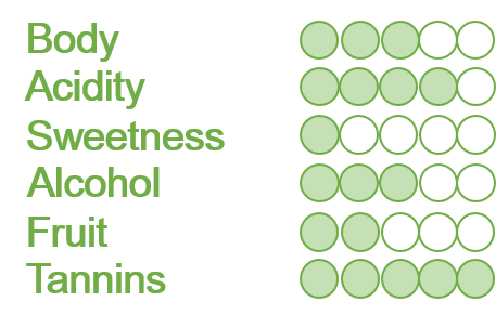 - Plum and red fruit, velvety texture, soft and round tannins, lower in acidity.